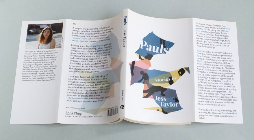This was selected by Quill and Quire magazine as one of the best covers of 2015. The author asked for fragmented figures on the cover. A second starting point was a painting by Joseph Albers of an object that looked like folded paper. (Pauls by Jess Taylor, BookThug Press, 2015)